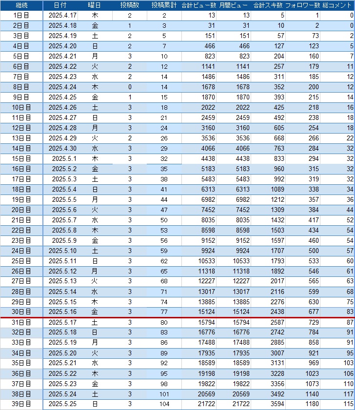 1日1200ビューに加えて、コメントも増えています。これが常態化していくのが今回の方法論となります。