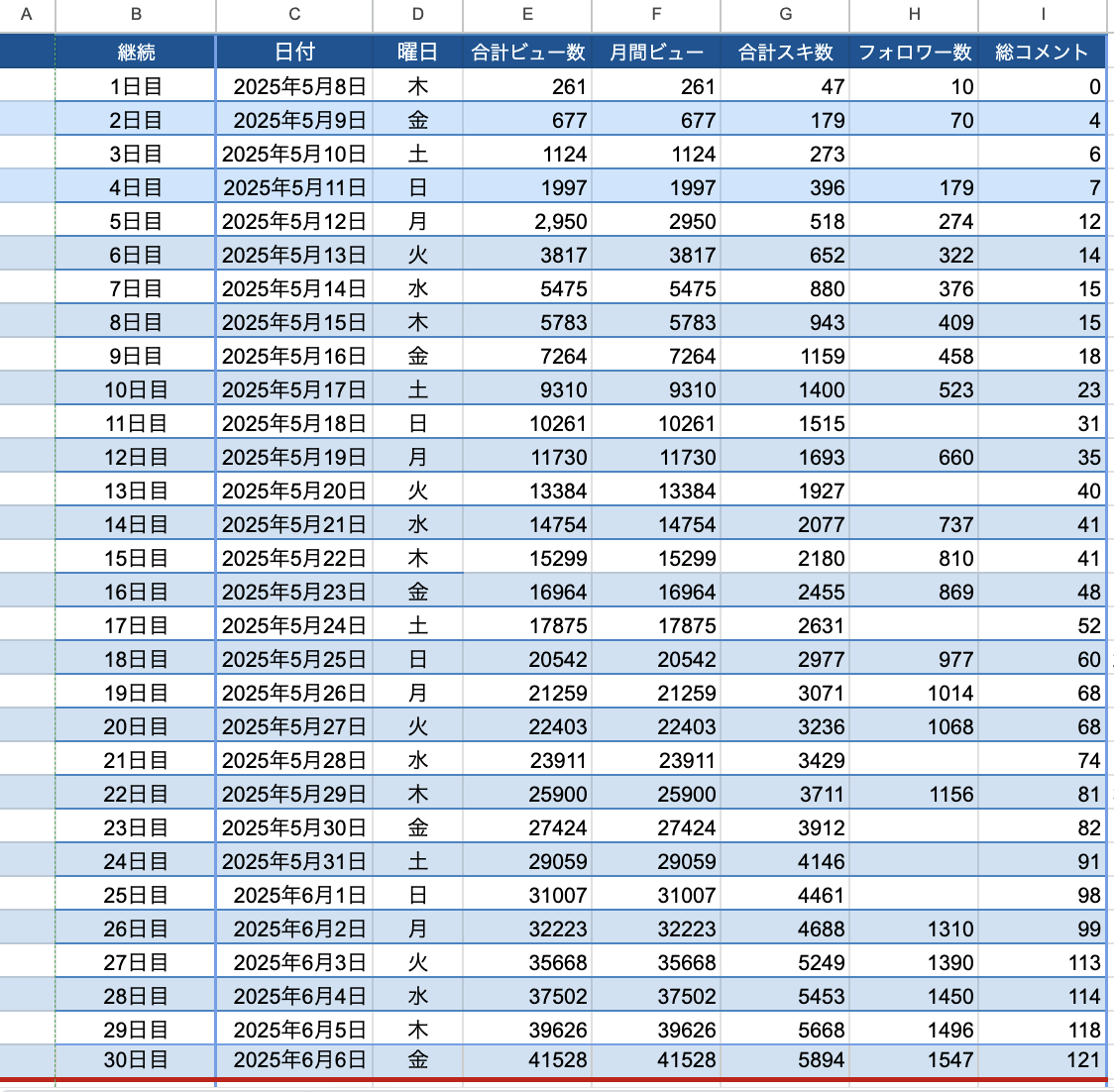 note運用の方法論自体はすべて同じです。ジャンルによる変動はあるものの、ほなみさんはコツを掴むまでが非常に早かったように感じます。結果として30日間で月間4万ビューを超えて、コメントも僕の2倍の数に。