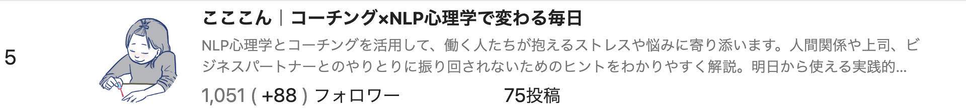 「HN:こここん」で活動していた柴田晴香さん。講義収録のzoomに参加されて以降は、講義ビデオを元に着々と進められました。運用方法に特段大きな問題はありませんでしたが、フォロワーの伸びを含めた気になる点があり伴走グループへ。noteフォロワー急上昇ランキングでは、瞬く間に上位ランカーとなりました。