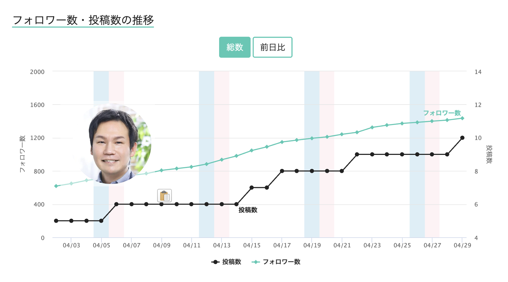 2人目:1日の最大フォロワー増は43名